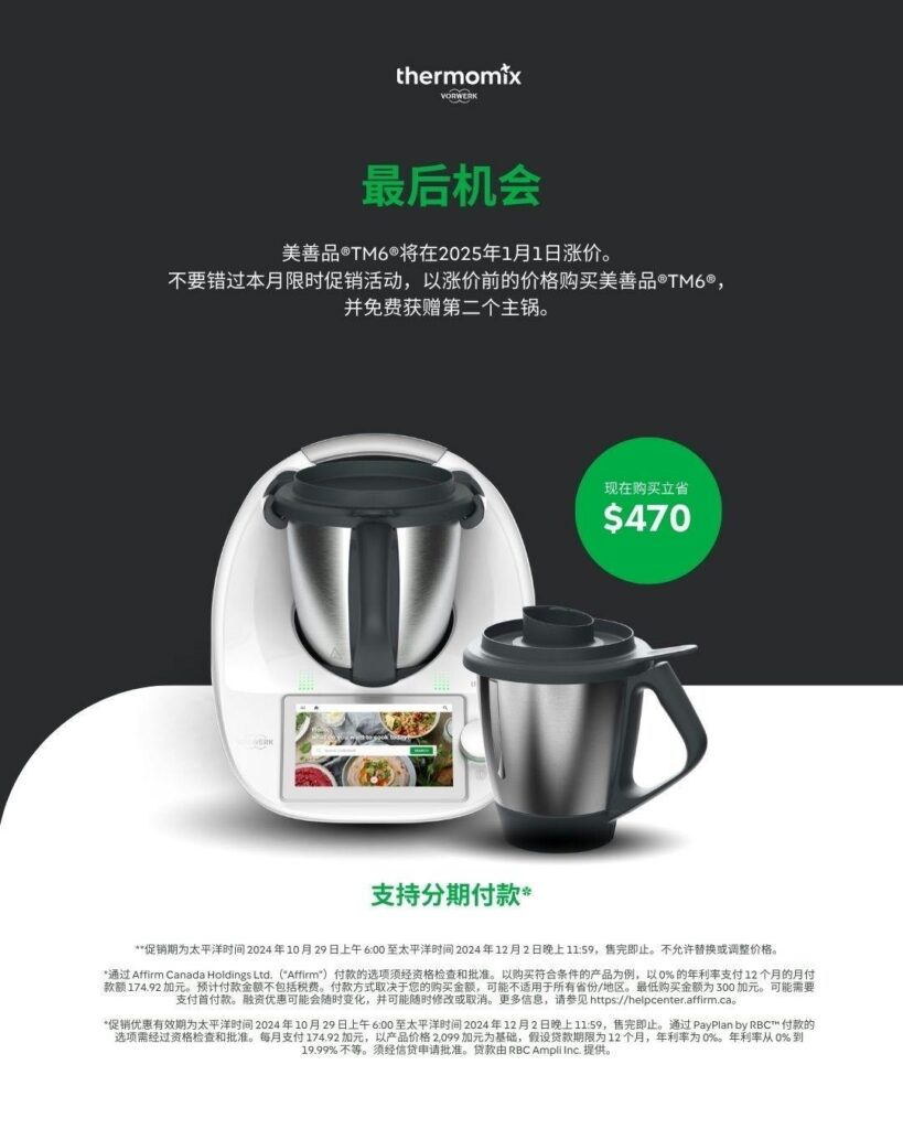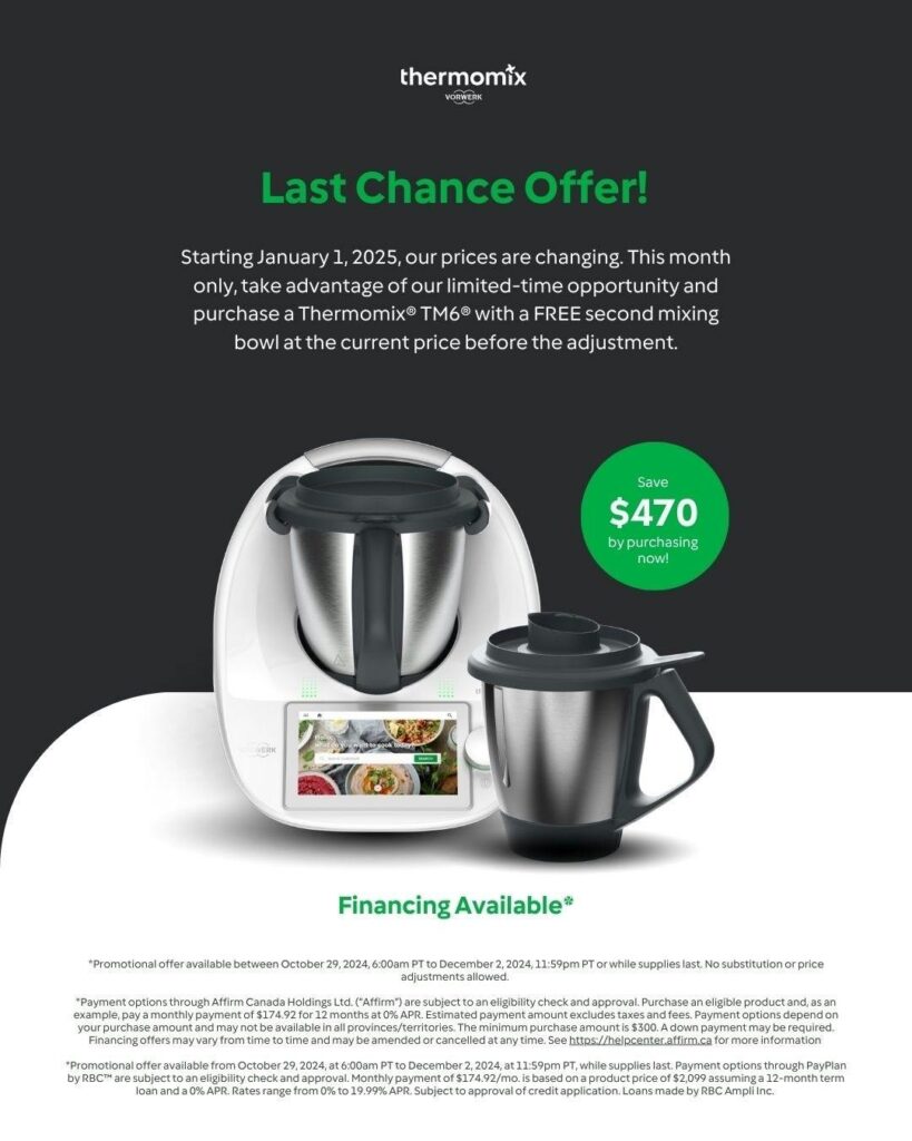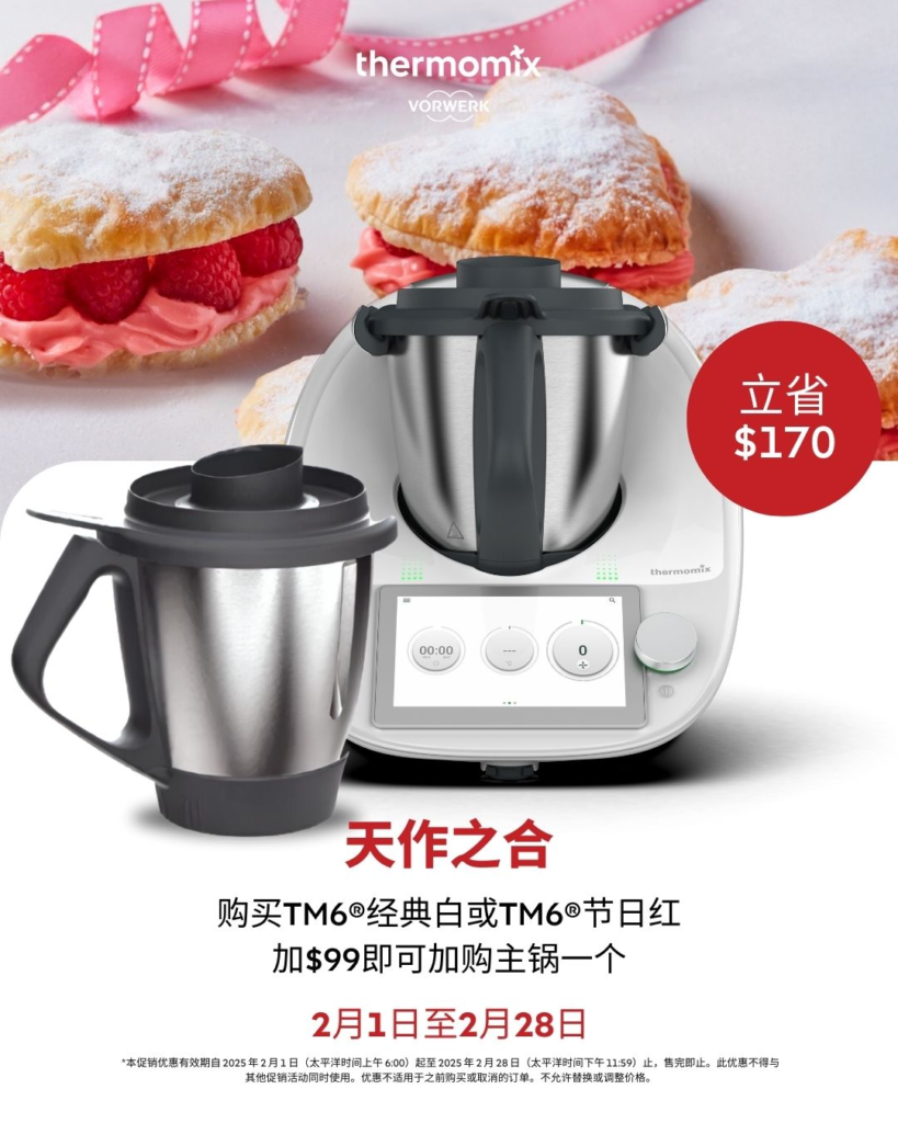 Buy one Thermomix® TM6® and get a second limited-edition Festive Red TM6® at 50% OFF! Special price: only $1,149.50! That’s a fantastic 50% discount!